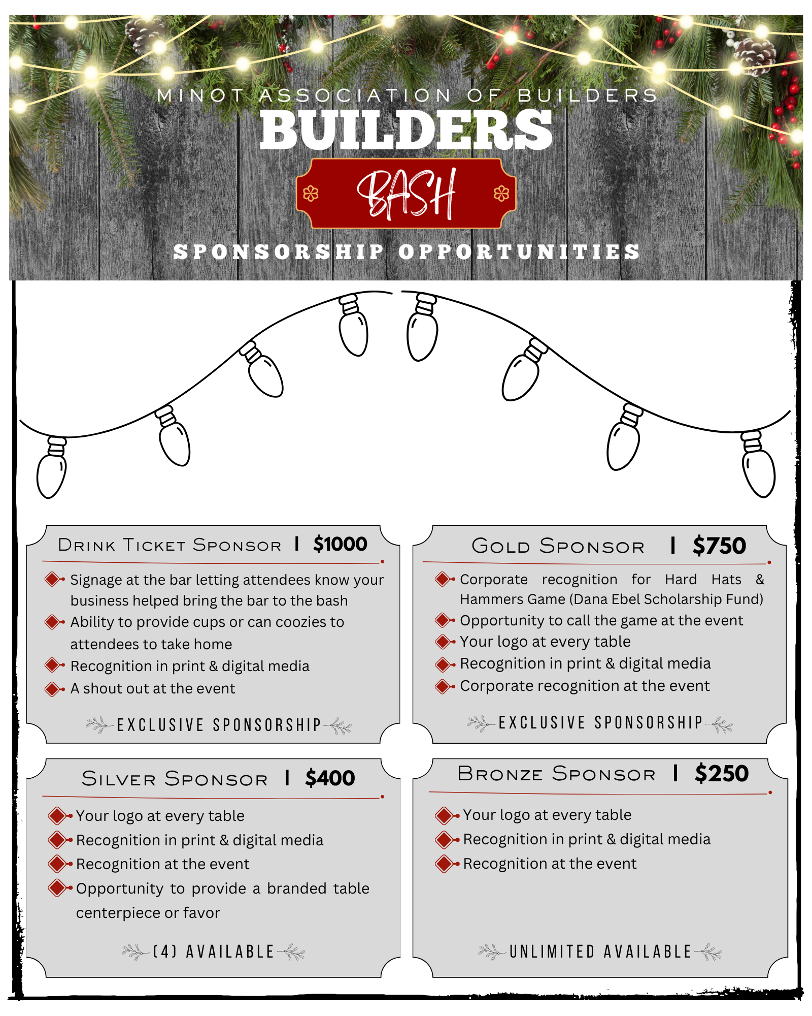 December 9th from 5:30-8 at the Minot Gun Club for our annual Builders Bash!