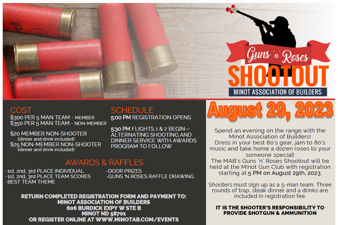 We hope you'll join us again at the Minot Gun Club on Tuesday, August 29th! Registration is OPEN and can be completed online HERE or by filling out the PDF form linked below.